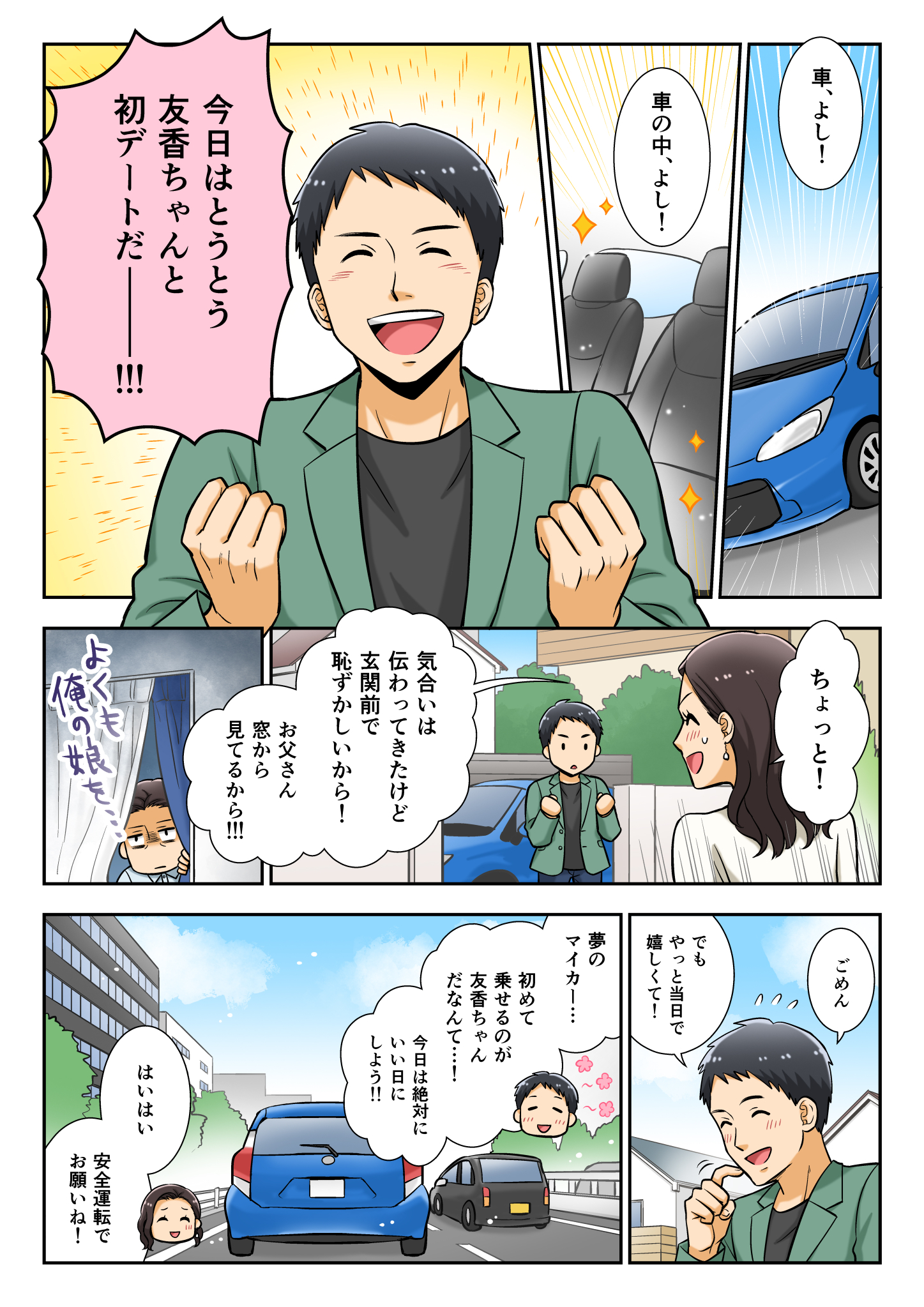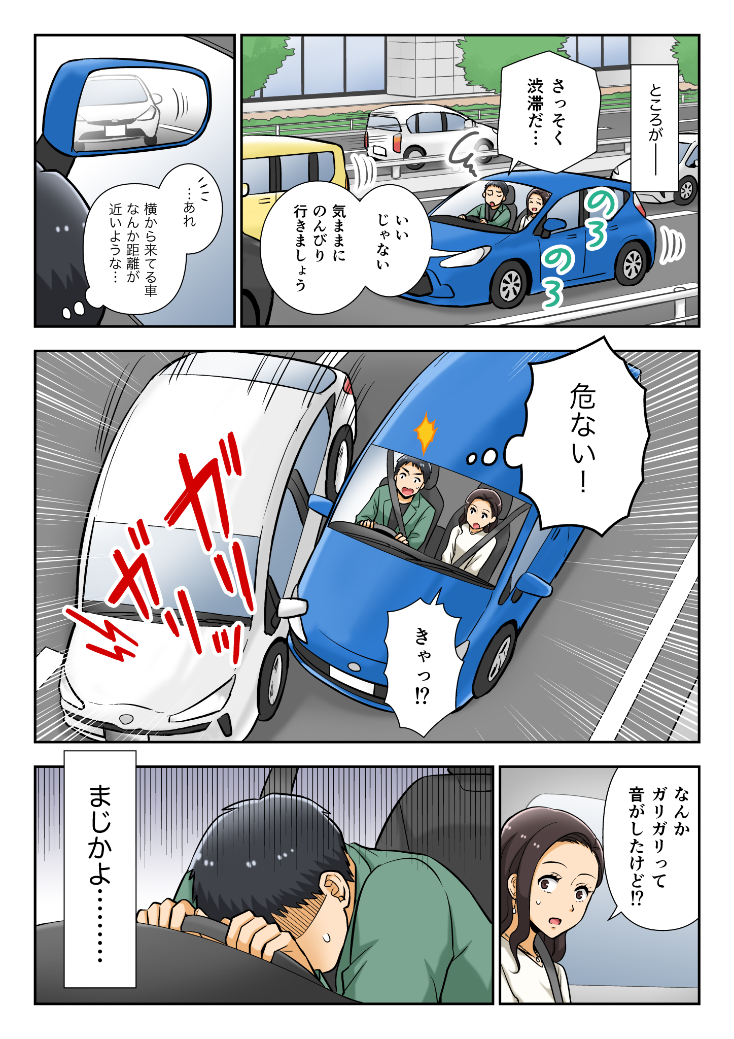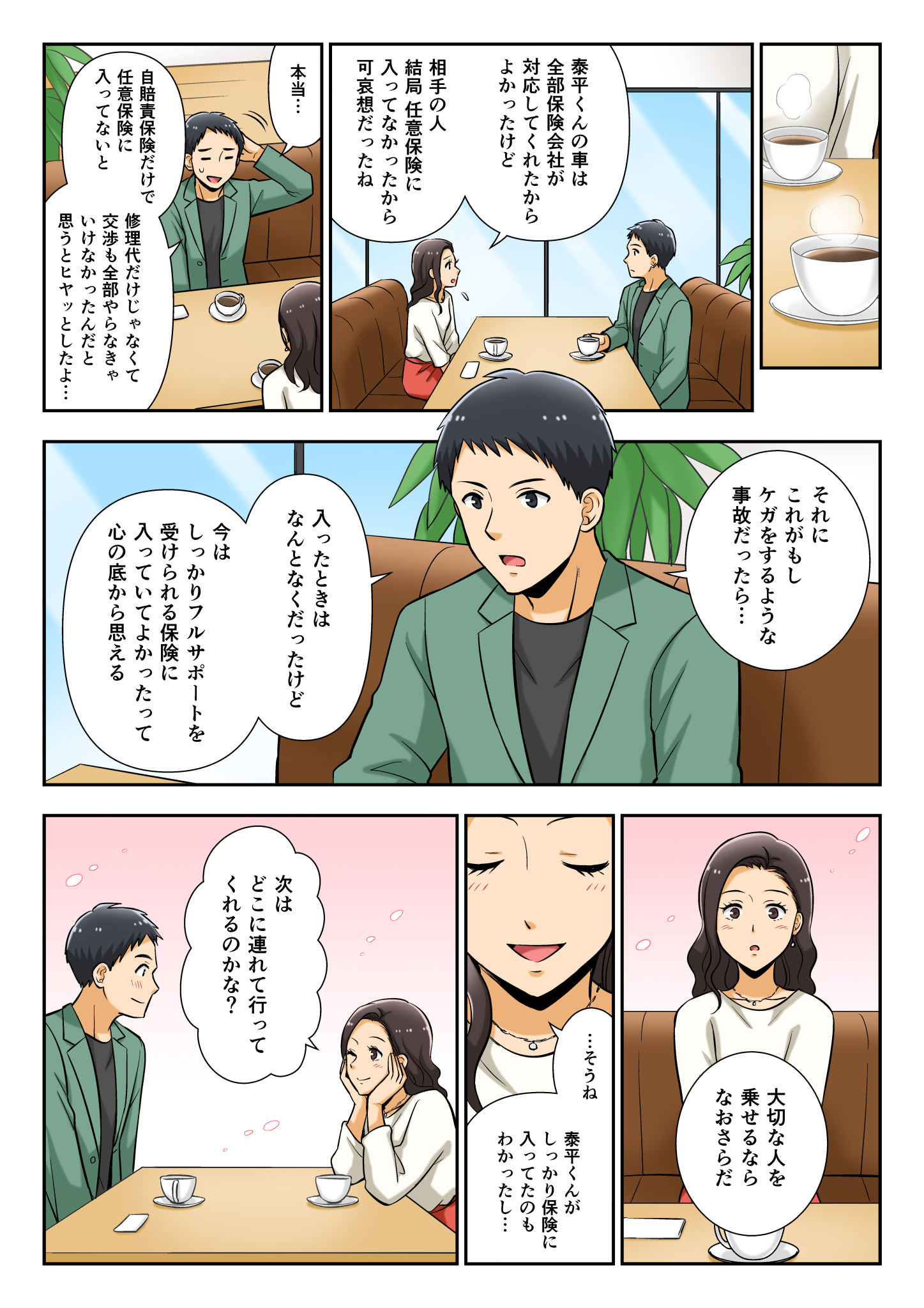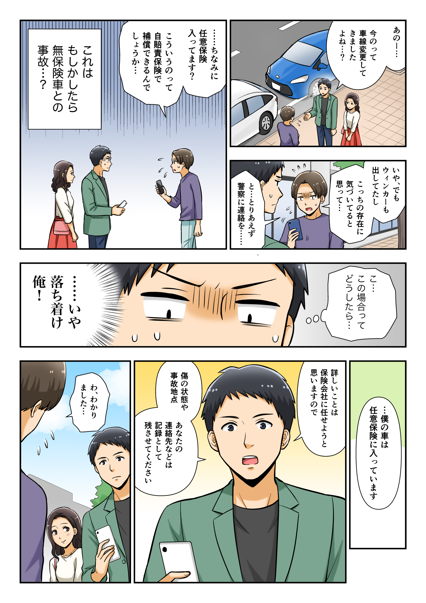 この漫画は、若者が自動車保険の大切さを実感するお話です。