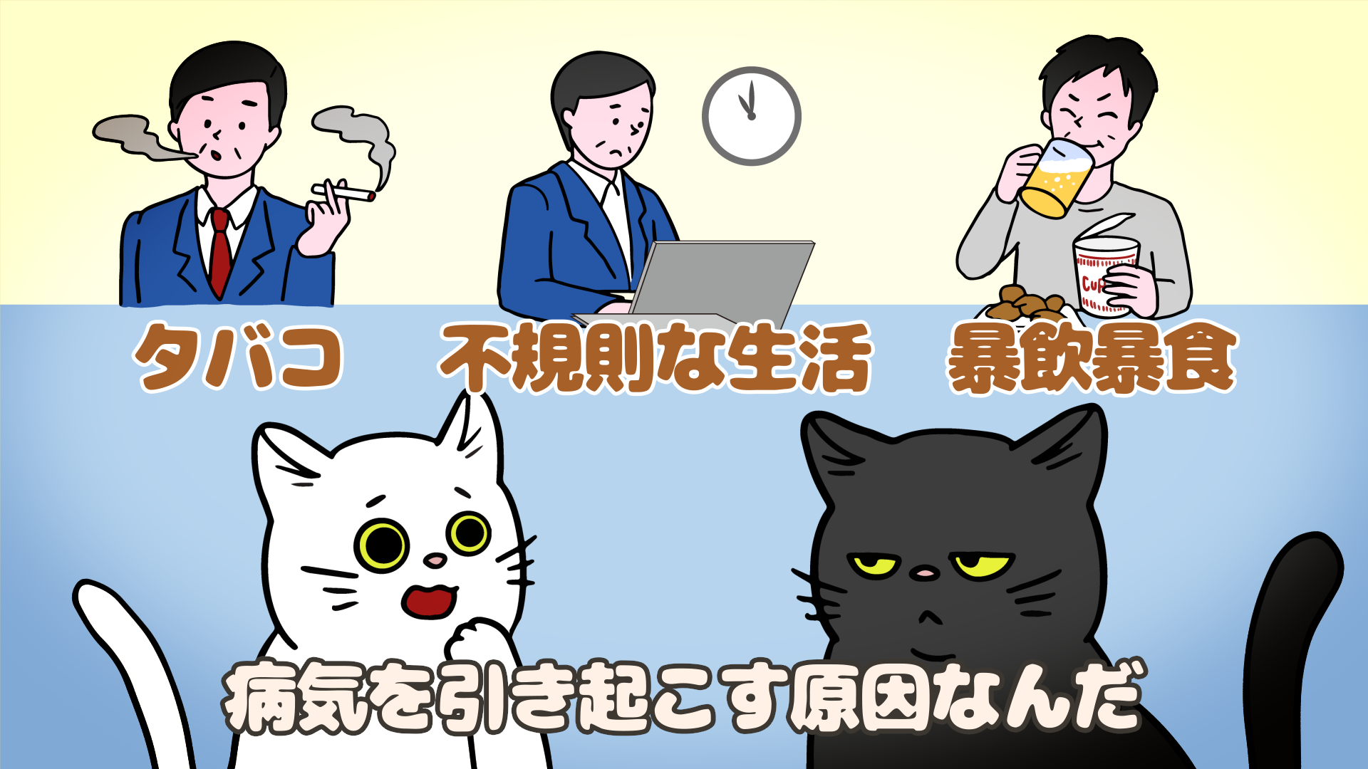 主人公が最近不規則な生活をしていることを思い出し、身体を壊さないか心配に・・・。